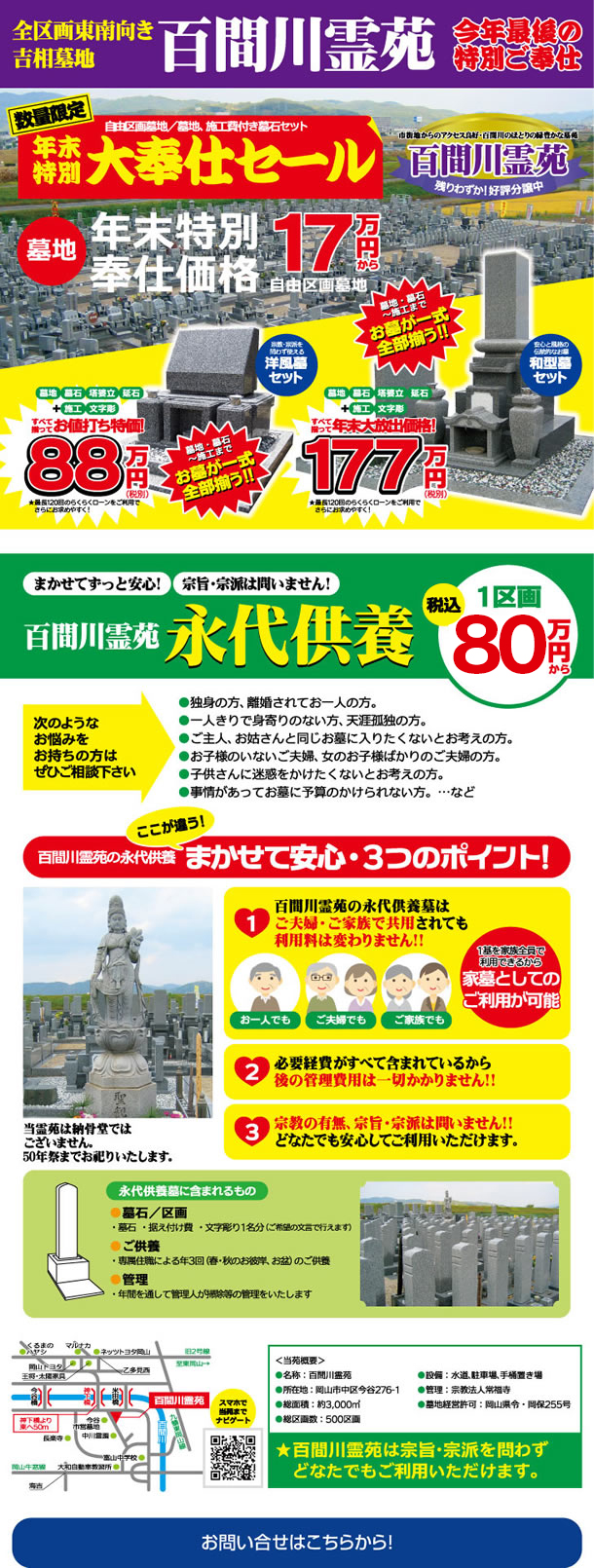 > 百間川霊園 数量限定 年末特別大奉仕セール